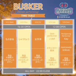 Get ready for a diverse range of entertainment! The DJ booths will offer programs in conjunction with clubs in the Shibuya area, and the LIVE stage will feature a different lineup of talented artists each day. There’s something for everyone at the Tokyo Night Market.