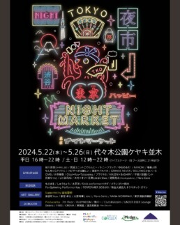 Mark your calendars for May 22nd to 26th and join us at Yoyogi Park for the Tokyo Night Market event. We look forward to seeing you there!