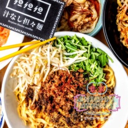 本場の職人が毎日その場で皮から仕込む焼き小籠包「めぐみキッチンカー」や、昔ながらの屋台でこだわりの出汁を使用し熱々で提供される「らーめん 五ノ神製作所」、前回も好評だったワンハンドで食べられる「バンタコス」、汁なし担々麺専門店「担担担(たんたんたん)」、これぞアジアの夜市を感じられる「宇田川カオマンガイ」など、初回開催の倍を誇る43店舗のフードコートが所狭しと並ぶ。