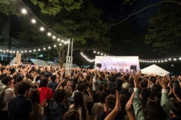 いよいよ終着点、ライブステージにたどり着くと、若手からベテランまでジャンルを超えたアーティストラインナップが観客たちをイベント終着点で迎え入れ、前川慎吾(かりゆし58)による特別編成や、「民謡ユニット こでらんに〜」によるステージでは、アーティストの呼びかけにより盆踊りのサークルが生まれ、海外ツーリストも「日本の祭り」を楽しんだ。