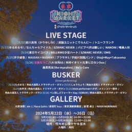 ライブステージでは、前川真悟(かりゆし58)、井手綾香、MASSAN×BASHRYをはじめ、東京サイコパスなどの話題のアイドル枠から新進気鋭のアーティストまで、